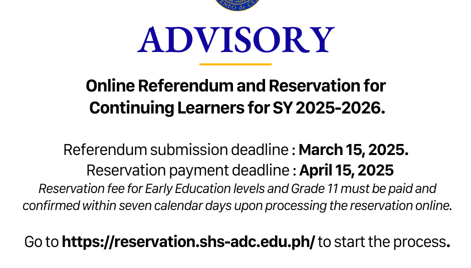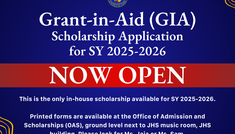 Admission applications for S.Y. 2026-2027 are now open. Apply now!