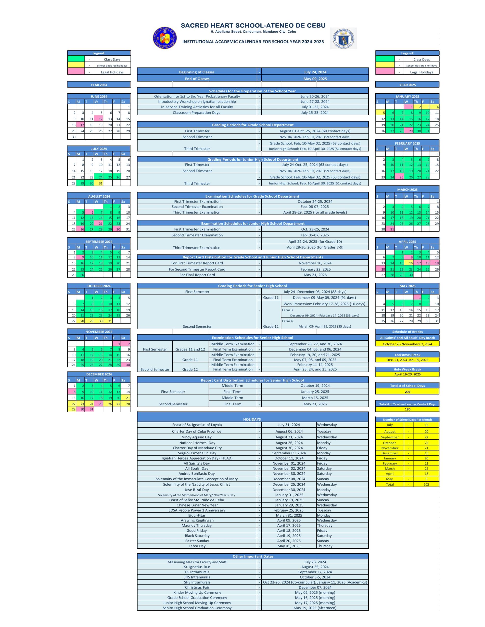 Please be guided with our Academic Calendar for the School Year 2024-2025.