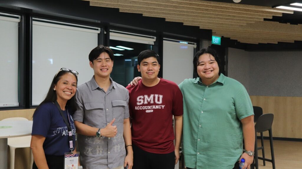 Meeting our alumni at Singapore Management University (Russell Rex King, Justin Jude Dionio, Kirk Lance Cuizon)